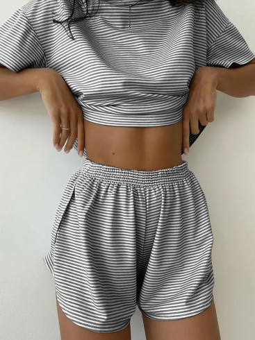 Ideal for warm summer nights, this set is perfect for sleeping, lounging, or running errands in style.
